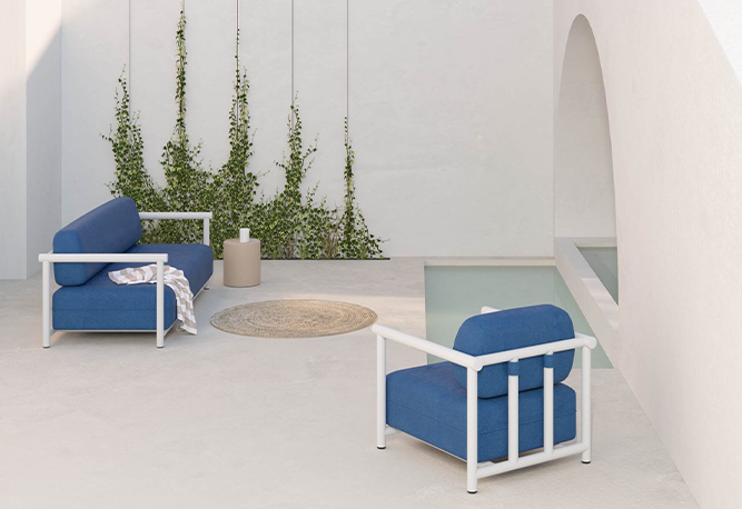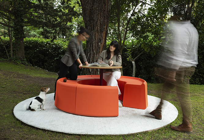 con la Tecnología Flexyskin, una novedosa y revolucionaria técnica propia a partir de espuma de poliuretano de origen vegetal, específica para mobiliario de exterior destinado a ambientes colectivos o públicos.